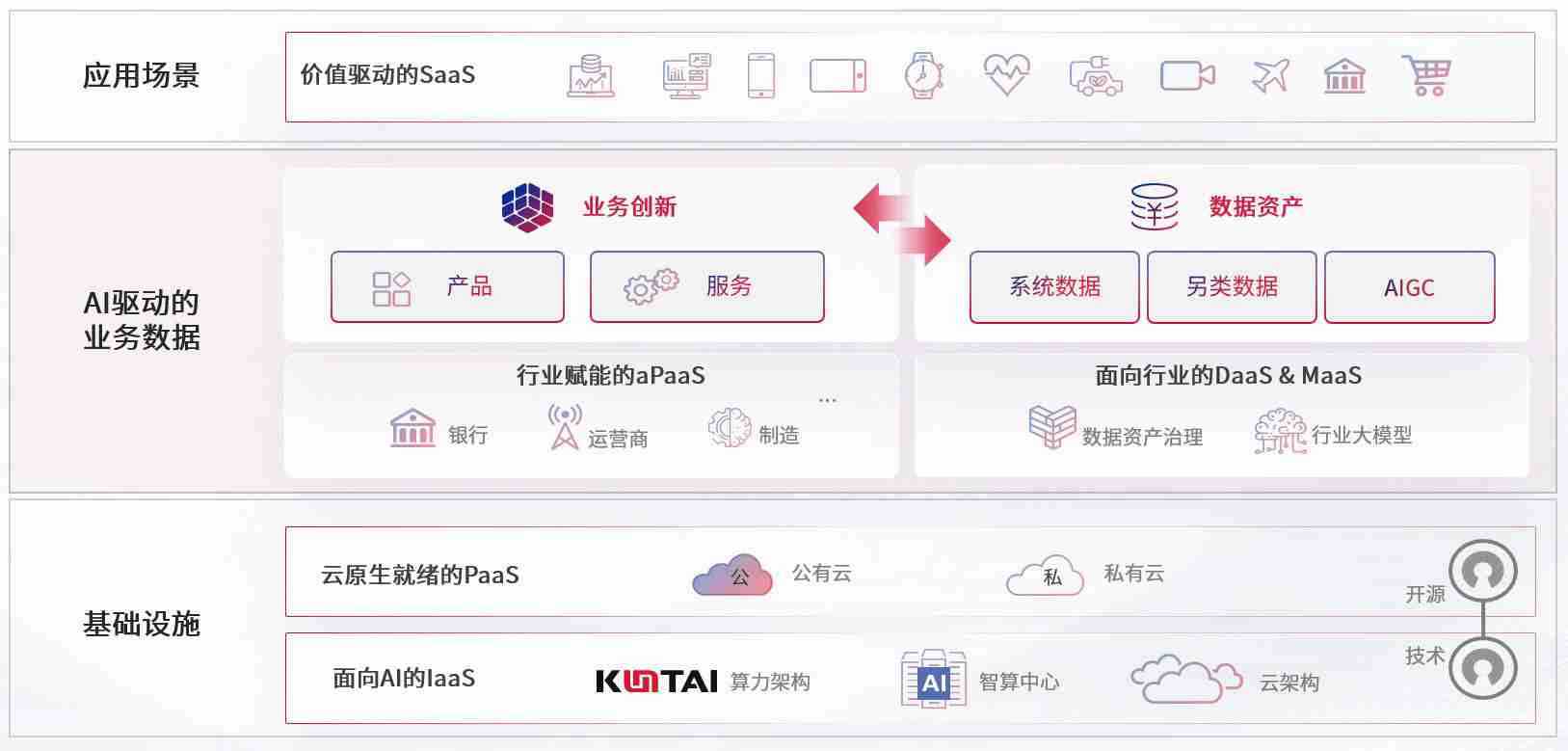 数字时代,,,围绕企业数字化转型的关键要素,,,J9国际站备用数码开创性的提出数云融合战略和技术体系框架,,,,着力在云原生、、数字原生、、、、AI原生和信创产业上架构产品和服务能力,,,为处在不同数字化转型阶段的快消零售、、、汽车、、、金融、、、医疗、、政企、、、教育、、运营商等行业客户提供泛在的敏捷IT能力和融合的数据驱动能力,,,,构建跨界融合创新的数字业务场景和新业务模式,,助力企业级客户建立面向未来的核心能力和竞争优势,,,全面推动社会的数字化、、、智能化转型升级。。