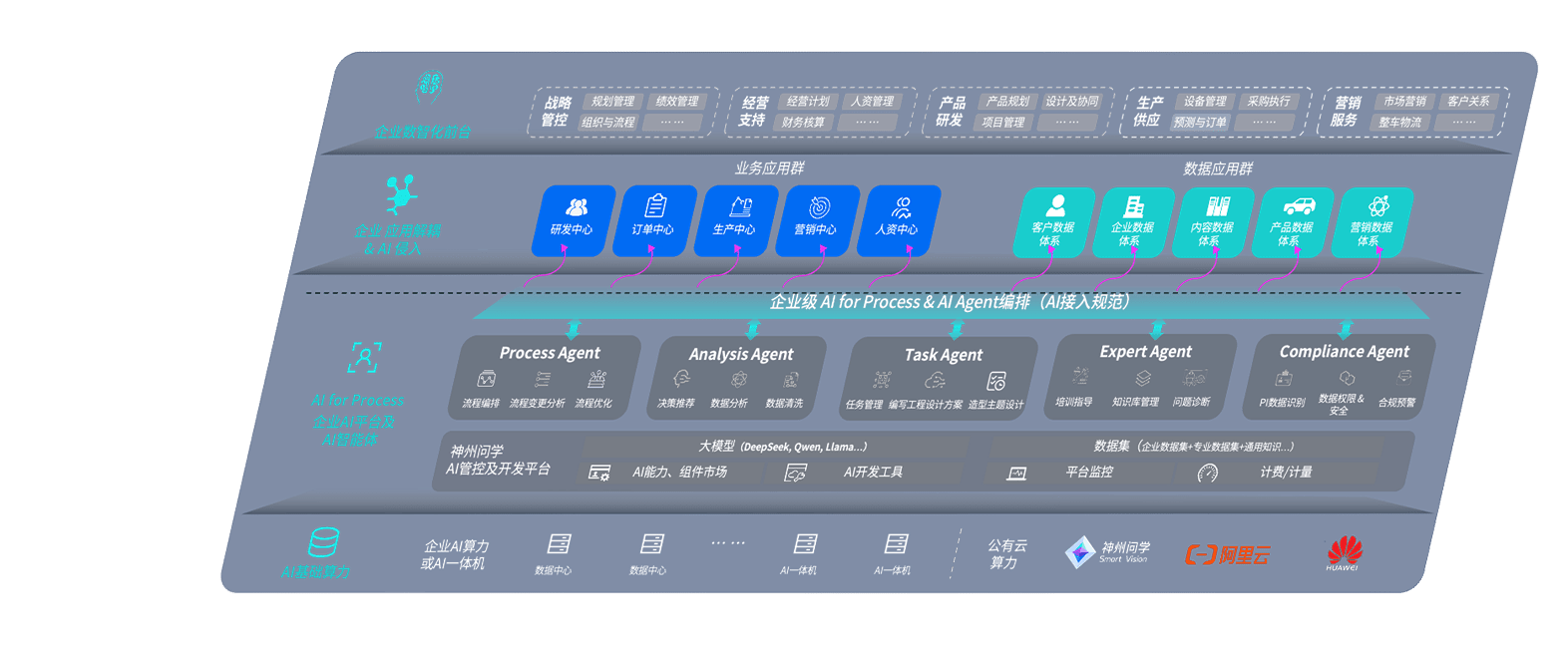J9国际站备用问学智车解决方案是一套基于AI技术的汽车行业智能化系统,,覆盖从底层算力到顶层AI应用的全栈方案。。方案由算力层、、、模型层和应用层组成:算力层,,方案支持多种一体机配置,,,,具备云端灵活部署、、、、多云适配以及动态优化计算资源的能力;模型层,,,,J9国际站备用问学平台版提供了企业级AI应用一站式构建与管理平台,,支持基于后训练强化技术的汽车企业专属模型的训练、、、评测和运营;应用层,,,,J9国际站备用问学DeepSeek版提供包括超级员工、、智能招采、、、、智能营销、、智能客服、、AI for BI等一系列解决方案,,,,可助力汽车行业实现数字化转型,,,让管理更智能、、响应更敏捷。。。。