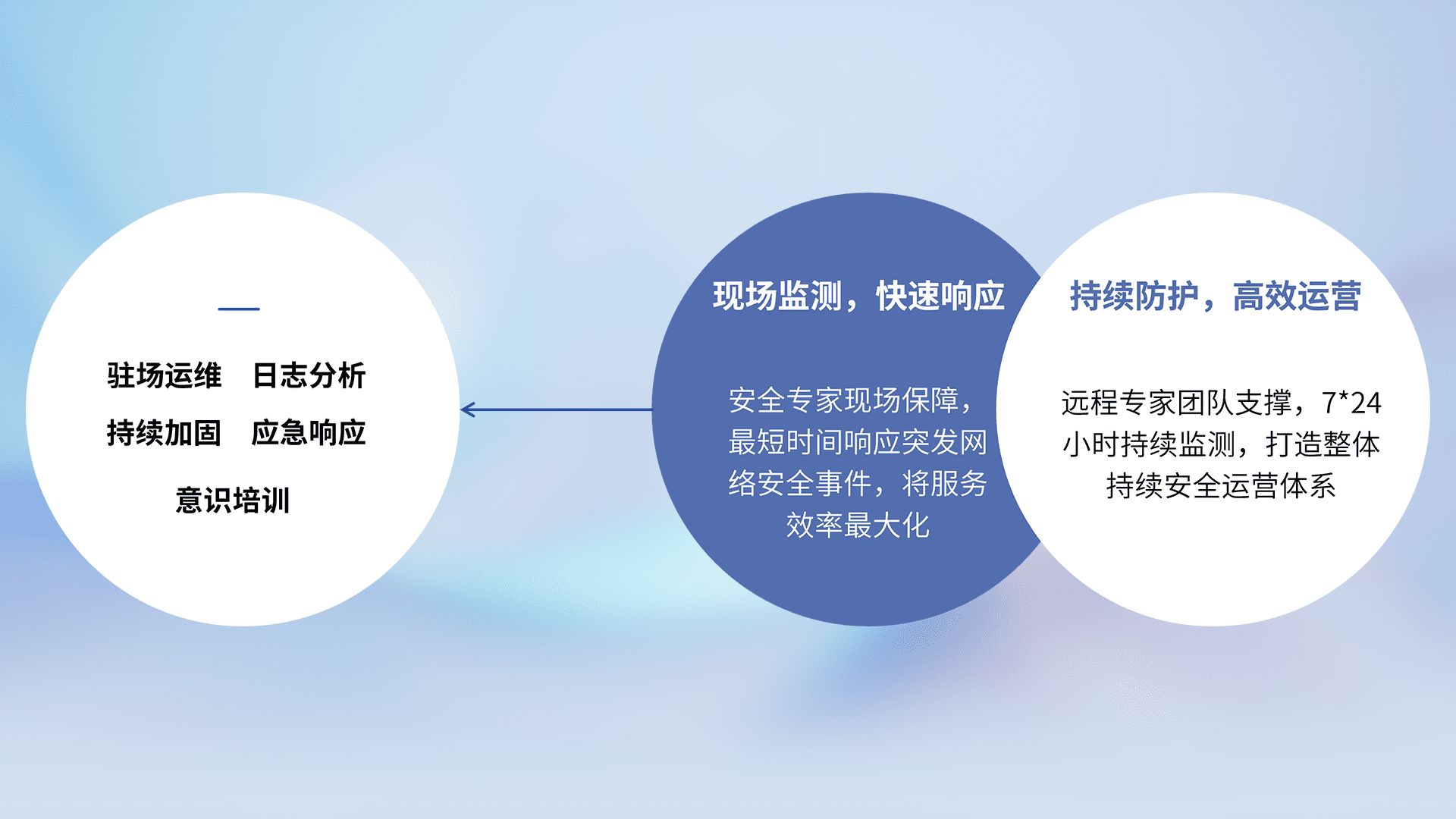 7X24小时持续监测安全事件,保持安全策略有效性,降低资产脆弱性风险,,,精准拦截黑客攻击,,,减少被黑客利用的机会,,,第一时间遏制,,降低损失。。